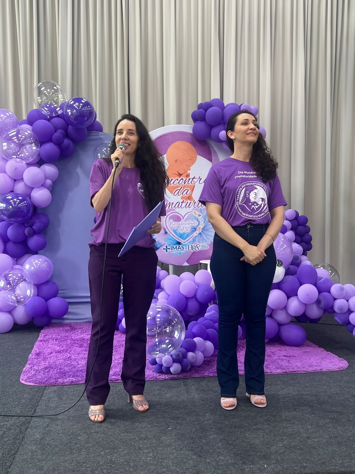 Foi nesse cenário de crescimento, dedicação e cuidado humanizado que surgiu, em 2023, o Encontro da Prematuridade. A proposta era criar um espaço de reencontro entre famílias e profissionais que, durante semanas ou meses de internação, constroem laços profundos. Assim como na primeira edição, o evento deste ano foi organizado integralmente em parceria entre a equipe da UTI Neonatal do HRA e o LAPREM da UFSC, ambulatório responsável pelo acompanhamento dos bebês após a alta. Sob supervisão da professora Cristiane Moran e com o apoio de seus alunos, a equipe uniu esforços juntamente aos profissionais da UTI Neo na criação da decoração artesanal, na mobilização de doações e em toda a preparação do encontro, fortalecendo o trabalho conjunto que deu vida ao evento. Empresários e apoiadores da comunidade contribuíram com recursos, alimentos, brinquedos e diversos materiais, tornando o ambiente ainda mais acolhedor e emocionante.