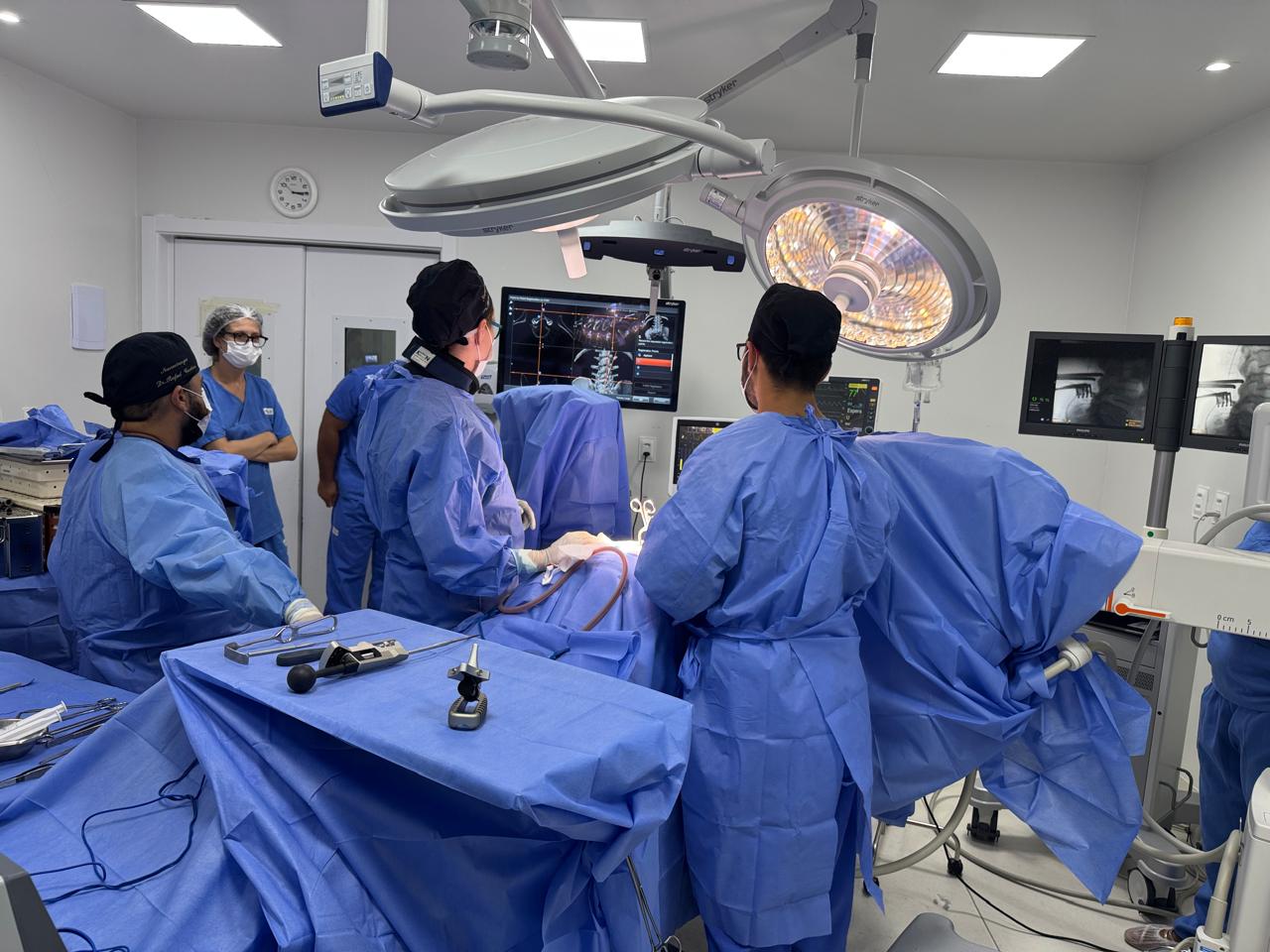 As primeiras cirurgias com uso da nova tecnologia ocorreram na quarta e sexta-feira da última semana (26 e 28), após intenso treinamento com médicos, enfermeiros, instrumentistas e equipe de apoio, promovido pela empresa responsável pela tecnologia. Os dois primeiros procedimentos, realizados pelo SUS, foram conduzidos pelo neurocirurgião Dr. Rafael Cordeiro dos Santos. A terceira cirurgia foi feita via convênio pelo ortopedista Dr. Paulo Vinícius Silva Salustiano.
